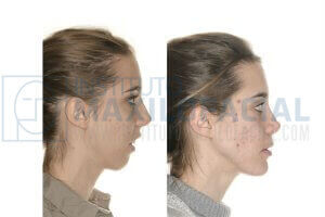 Orthognathic surgery of bimaxillary advance. Mentoplasty