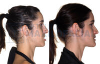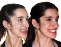 - Un año después,y una vez alcanzado el tamaño correcto del maxilar, se le realizó una cirugía ortognática bimaxilar para colocar sus arcos dentales en su sitio, dando a su perfil una proyección más balanceada.