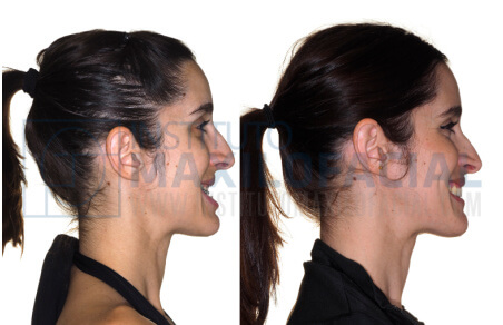 - Un año después,y una vez alcanzado el tamaño correcto del maxilar, se le realizó una cirugía ortognática bimaxilar para colocar sus arcos dentales en su sitio, dando a su perfil una proyección más balanceada.